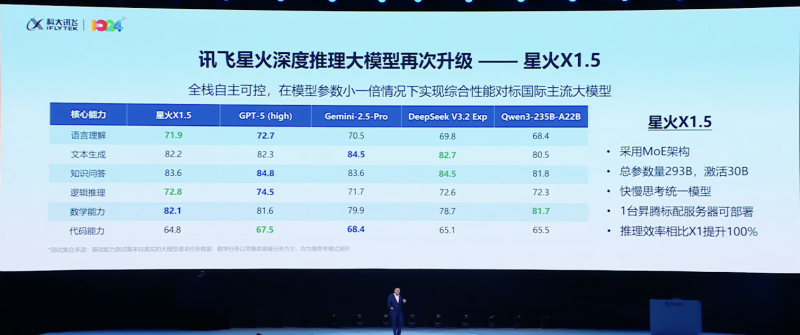 实现“可管可控”,离不开坚实可控的技术底座。科大讯飞同期发布的讯飞星火X1.5深度推理大模型,展示了其在“自主可控”与“软硬一体”上的硬实力。