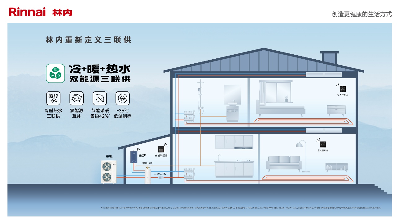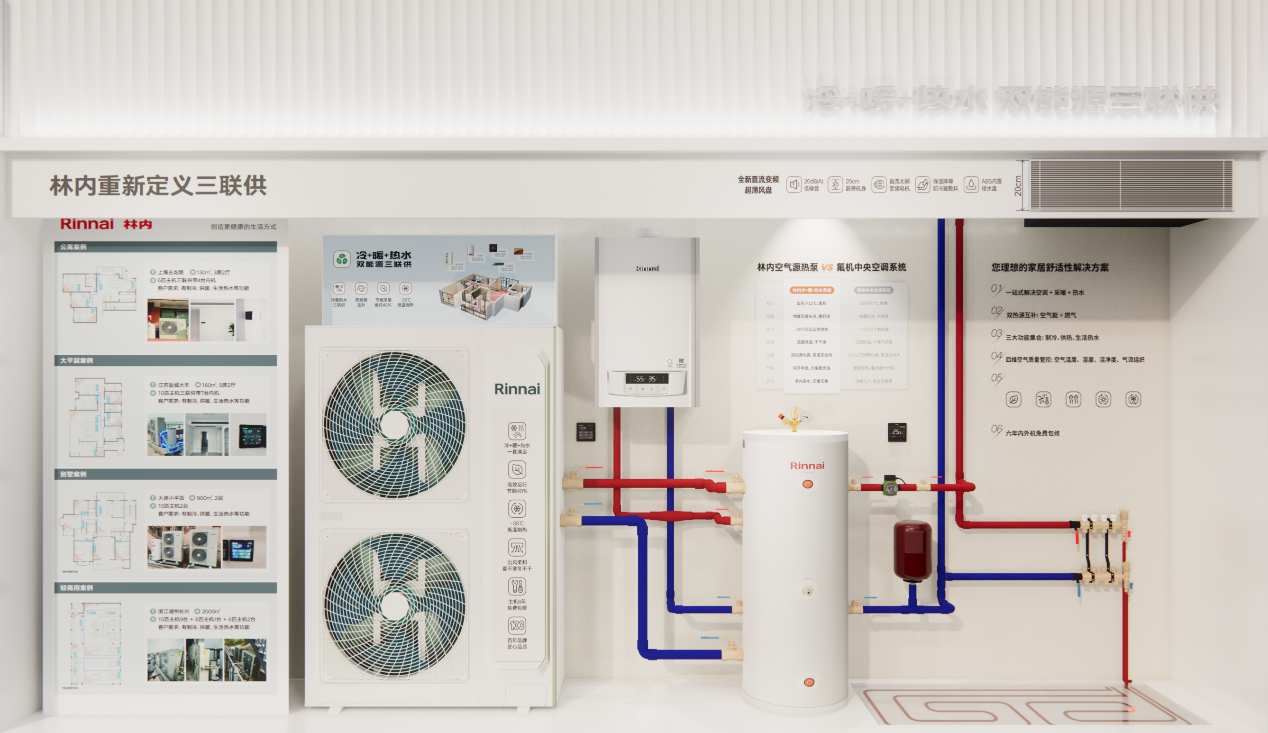 此次荣膺“用户口碑奖”的林内冷+暖+热水双能源三联供系统,以一套集成方案解决制冷、采暖和热水三大需求,精准满足了现代家庭对舒适与节能省心的双重需求。