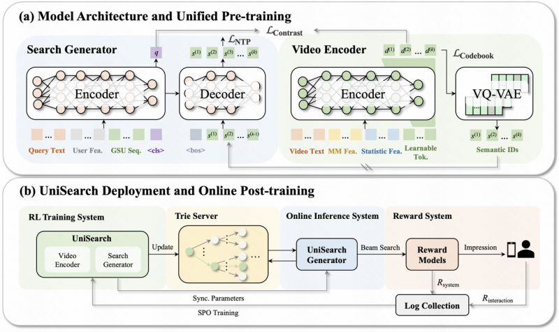 传统搜索如同依赖固定目录的“图书管理员”,只能通过关键词逐一匹配内容,面对口语化提问、实时需求时常常力不从心。而快手此次推出的双技术方案,打破了这一局限:UniDex以视频语义ID为核心,重构了搜索引擎的检索大脑,用智能语义表征替代传统关键词索引,让系统响应速度提升25%的同时,大幅降低了计算资源消耗;UniSearch则首创编码与生成联训的架构,让搜索能直接“生成”符合用户需求的内容推荐,尤其在直播搜索场景中,带动直播间进间数实现近两年最大幅度增长。