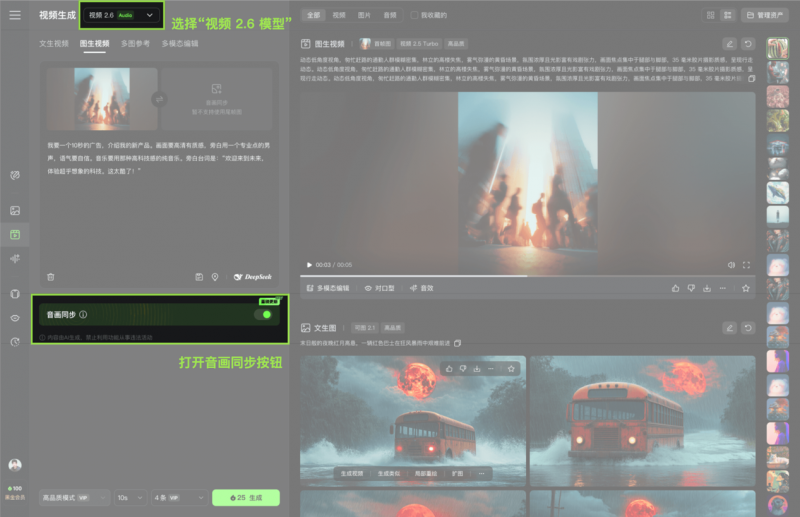 音频质量上,在支持人声、音效、环境声等多类型声音生成的基础上,生成的音频音质更干净、层次更丰富,整体听感更接近真实的混音效果,满足专业级创作对声音细节的高要求。