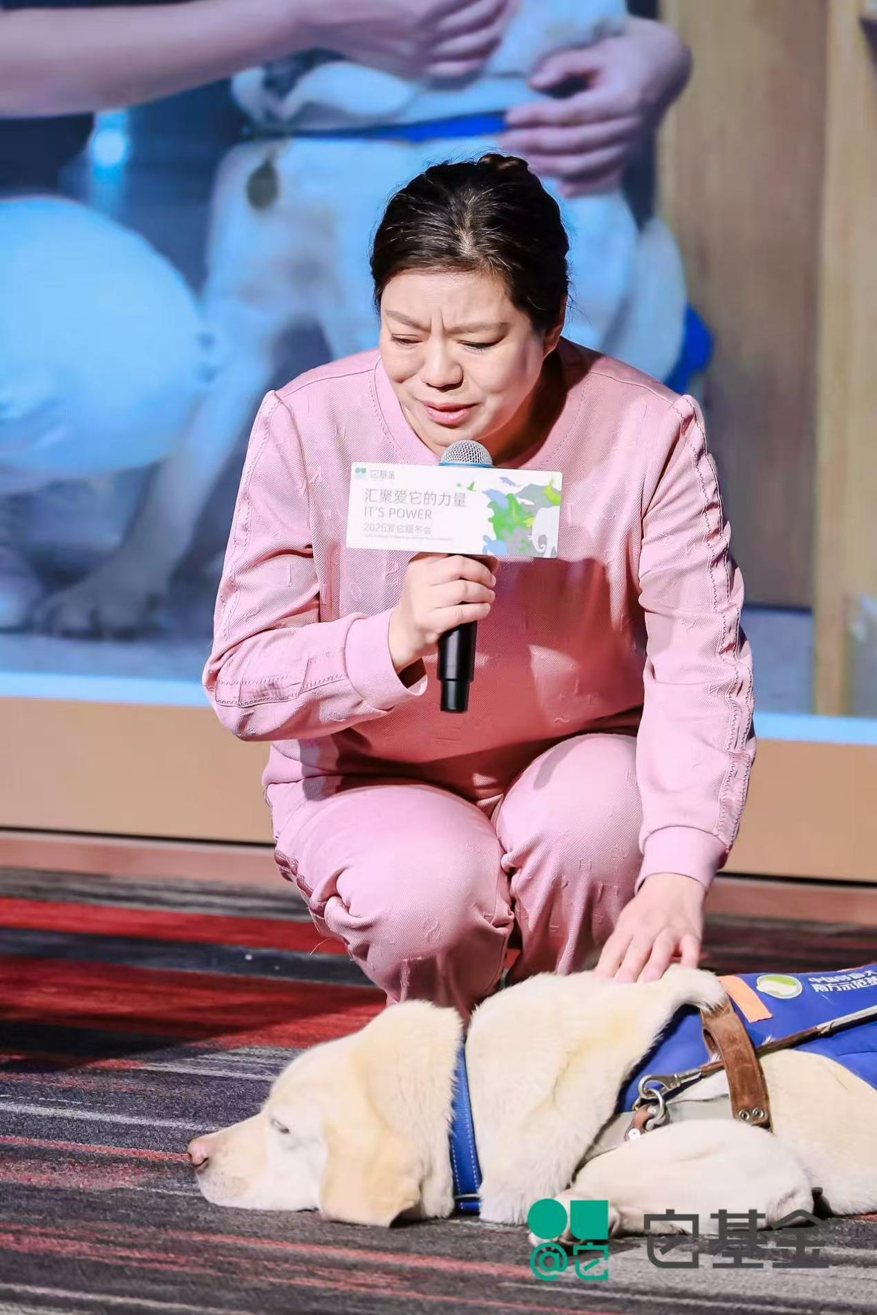 暖冬会现场,最打动人心的环节来自于“导盲犬公益体检行动”受益人代表黄跃红女士的亲身分享。她动情地讲述了自己与导盲犬“安安”相伴八年的故事:“当我失去了光,它就是我的‘第二双眼睛’。”在她心中,“安安”不仅是一位恪尽职守的工作伙伴,更是融入生命与家庭的一份珍贵寄托。