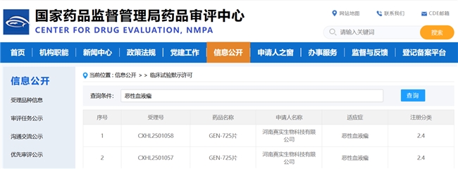 近日,国家药品监督管理局药品审评中心(CDE)批准河南真实生物科技有限公司GEN-725片(阿兹夫定)开展治疗恶性血液瘤的IIa期临床试验。此次获批标志着阿兹夫定在血液肿瘤治疗领域的临床开发迈出重要一步。