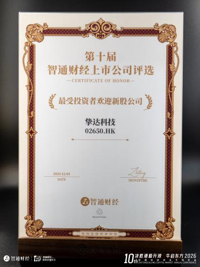 近日,港股智能充电第一股挚达科技(股票代码:02650.HK)在资本市场连续获得权威认可,一举囊括四项重磅荣誉:智通财经评选的“最受投资者欢迎新股公司”、每日经济新闻评选的“2025年港股最佳投资价值上市公司”、上海证券报评选的“上证鹰?科创新锐企业奖”和中国证券报评选的“成长价值金牛奖”。四项权威奖项为挚达科技提供了立体化的价值背书,标志着其自上市以来的表现获得了市场的高度认可。