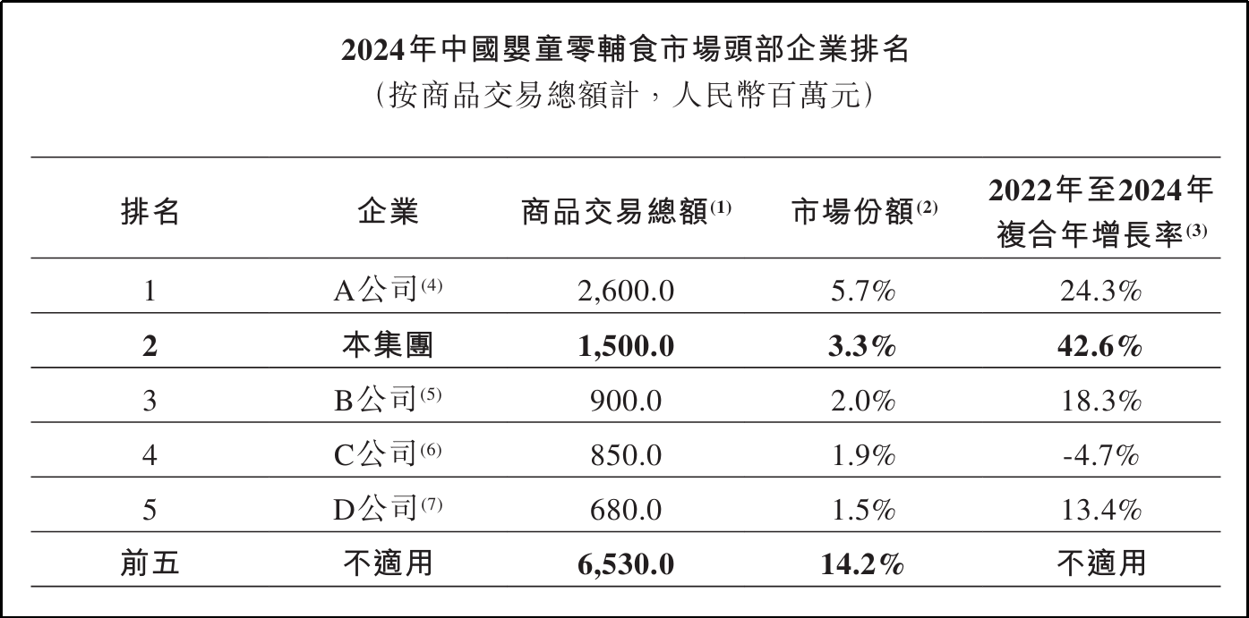 与此同时,中国婴童零辅食企业处于高度分散的竞争格局中。2024年,前五大市场参与者的商品交易总额约为人民币6,530.0百万元,占中国婴童零辅食市场的比例约为14.2%。2024年,爷爷的农场以约人民币1,500.0百万元的婴童零辅食商品交易总额位列前茅,市场份额约为3.3%。