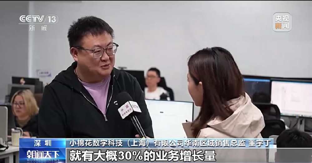小棉花数字科技(上海)有限公司华南区域销售总监 董宇丁:我们今年一开年就有大概30%的业务增长量,截止到现在的话,今年已经增长了大概100多家客户了。