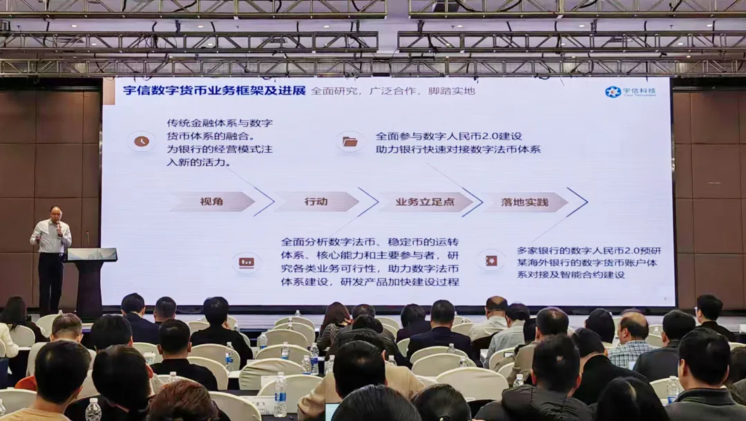 近期,在某重要的行业内数字人民币业务交流活动中,宇信科技助理总裁徐海波详细拆解了宇信科技深耕数币领域的实践成果,介绍了传统银行建设数币体系的运营机构系统的路径。他指出,作为深耕金融行业26年的领军供应商,宇信科技自2024年起开始布局全球数字货币赛道,并深度参与国内数字人民币体系及海外数字法币系统的建设,形成了一套合规优先、模块化实施的实践路径。