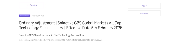 1月19日,国际知名指数机构Solactive发布了最新“Solactive GBS Global Markets All Cap Technology Focused Index(Solactive GBS全球市场全市值科技指数)”。凭借在人工智能等前沿技术领域的持续投入与卓越的科技创新实力,神州数码(000034.SZ)入选该指数,于2026年2月5日开盘起正式生效。