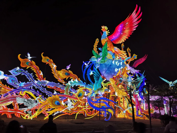 闽南元素的灯组造型、南音意境的光影表达、寓意“百鸟归巢”“四海升平”的主题场景,让“回家过年”的情绪在园区被不断放大。尤其是超大尺度的水上灯组,灯影铺展在水面之上,既有传统花灯的喜庆,又多了一份属于厦门的滨海浪漫,让人忍不住多走几步、多停一会。