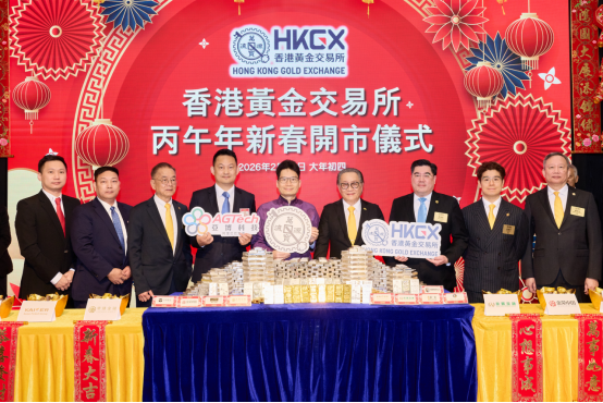 (香港,2026年2月20日)香港黄金交易所举行新春开市仪式。香港财经事务及库务局副局长陈浩濂先生,JP、香港黄金交易所主席张德熙博士、阿里巴巴集团成员公司亚博科技控股有限公司(08279)首席产品技术官赵皓等嘉宾出席。