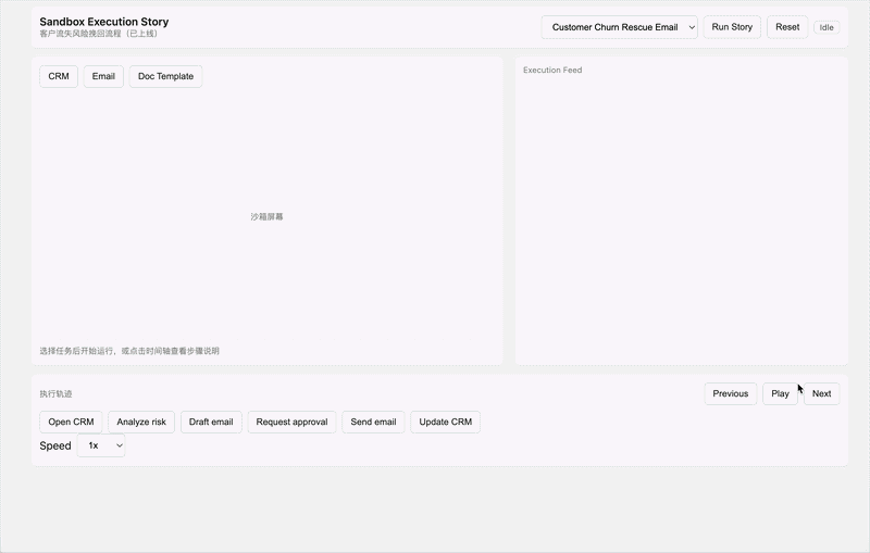 ● 可控执行沙箱:AI要删文件、发邮件、提交审批?必须在隔离环境运行,高风险动作必须经人审批。沙箱不仅隔离了操作环境,还生成实时执行日志和步骤回放轨迹,每一步都可追溯、可接管。这就像给AI戴上“镣铐”干活,确保操作安全可控。
