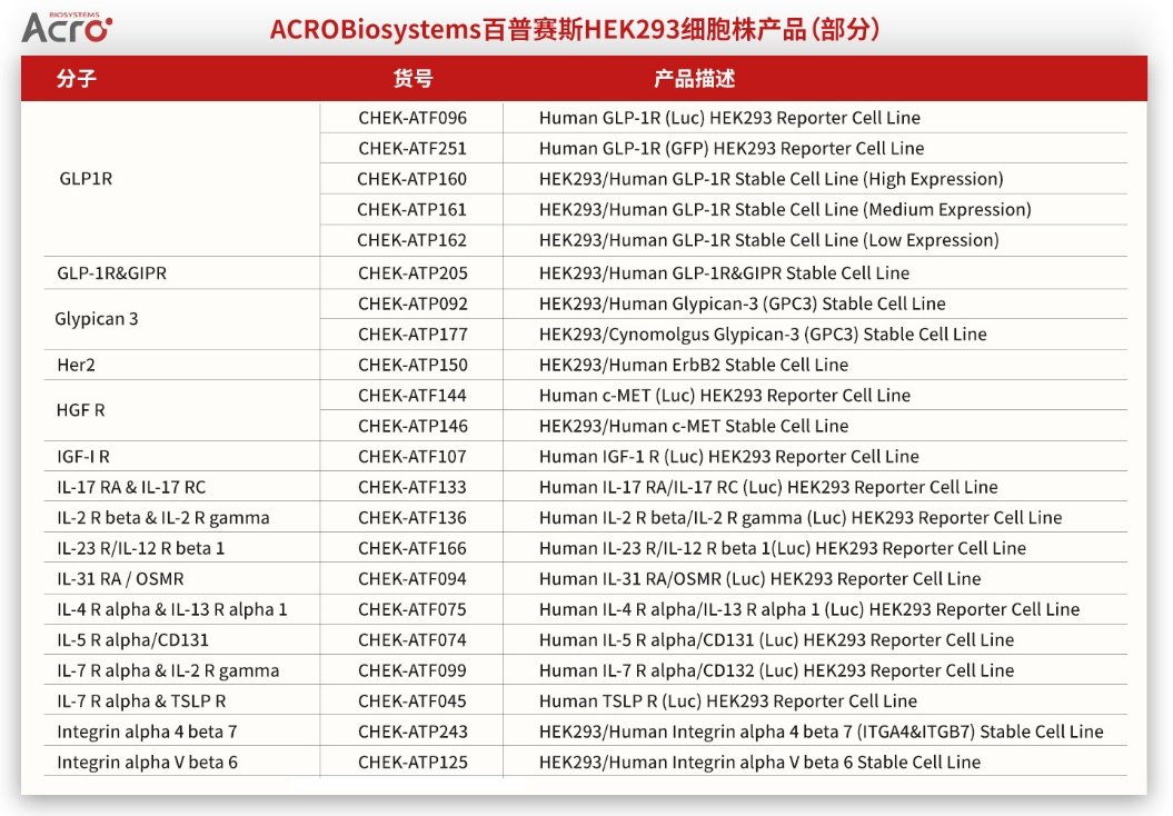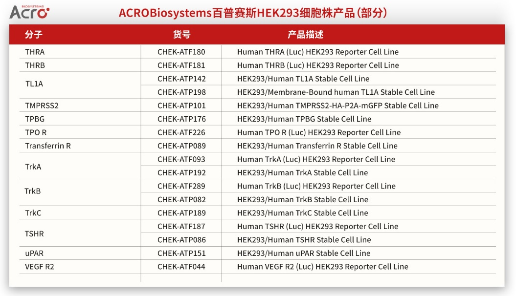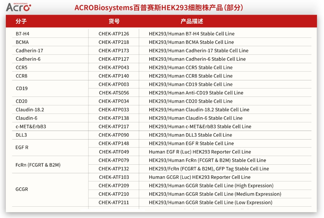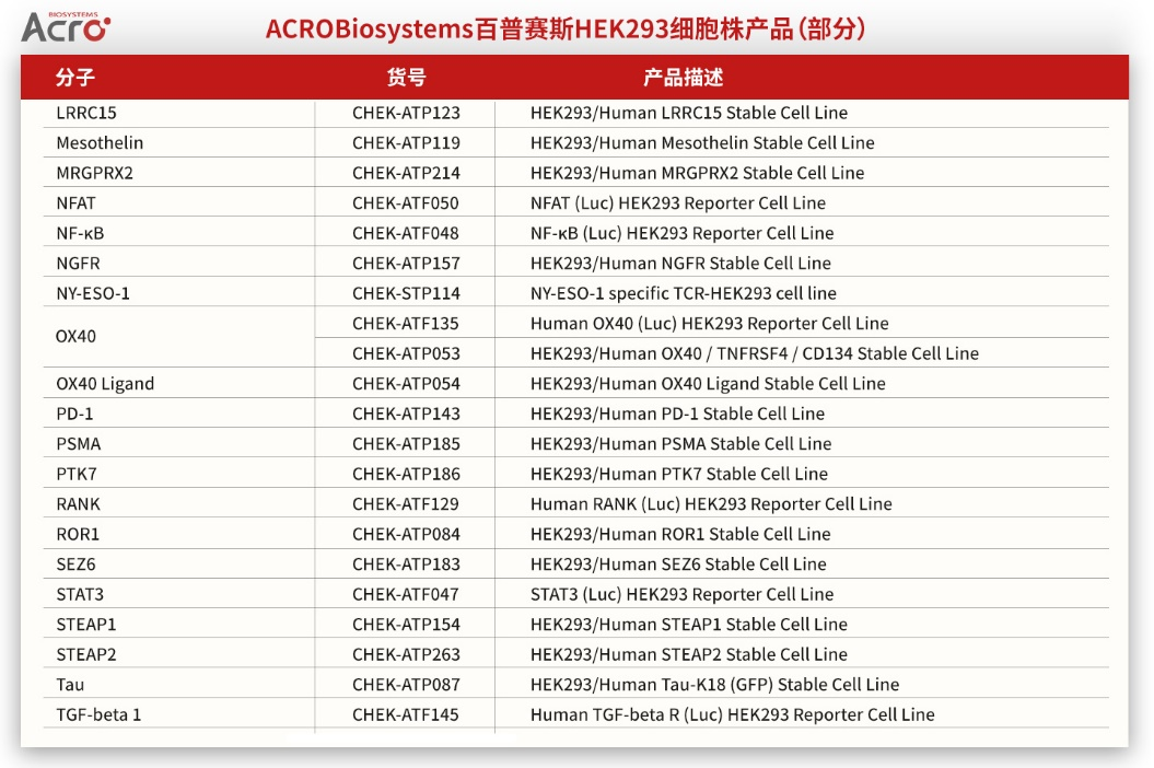 ACROBiosystems百普赛斯HEK293细胞株产品概览