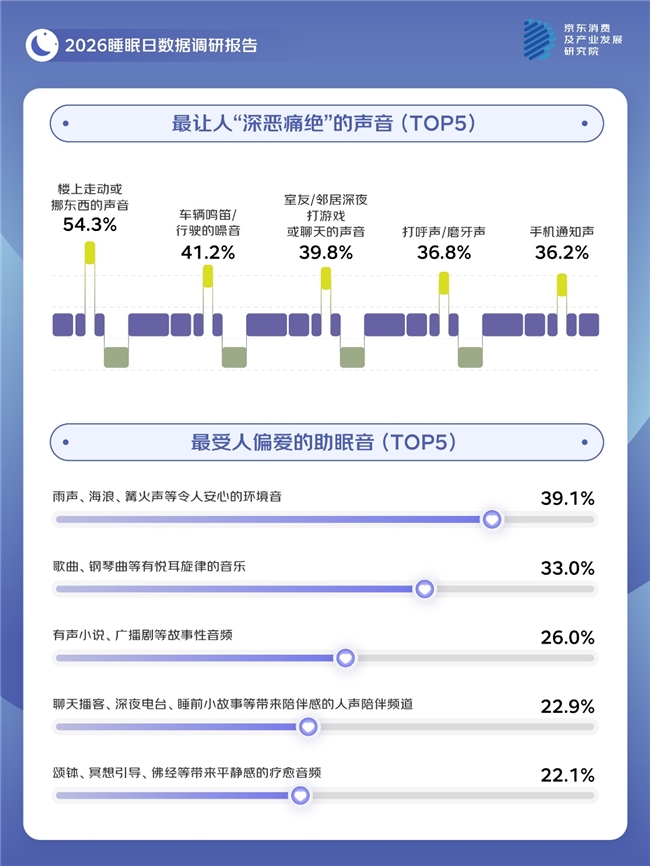 (原标题:京东睡眠日调研:四分之一失眠者靠“听声入睡”,河流声、雨声、海浪声催眠效果最佳)