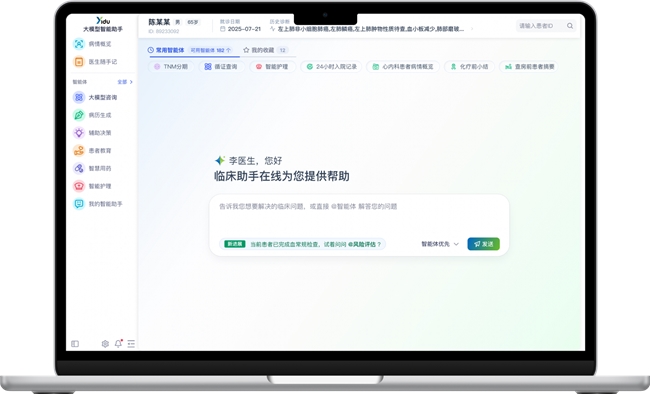 这些智能体均源自院内场景的深度打磨:医渡科技已在多家合作医院的真实临床环境中沉淀了200余个专科智能体,这些智能体经领域专属数据训练并完成临床场景深度验证。专科“顾问团”的协同发力,解决了通用AI“泛而不精”的痛点,为医生提供更贴合实际诊疗逻辑的决策支持。