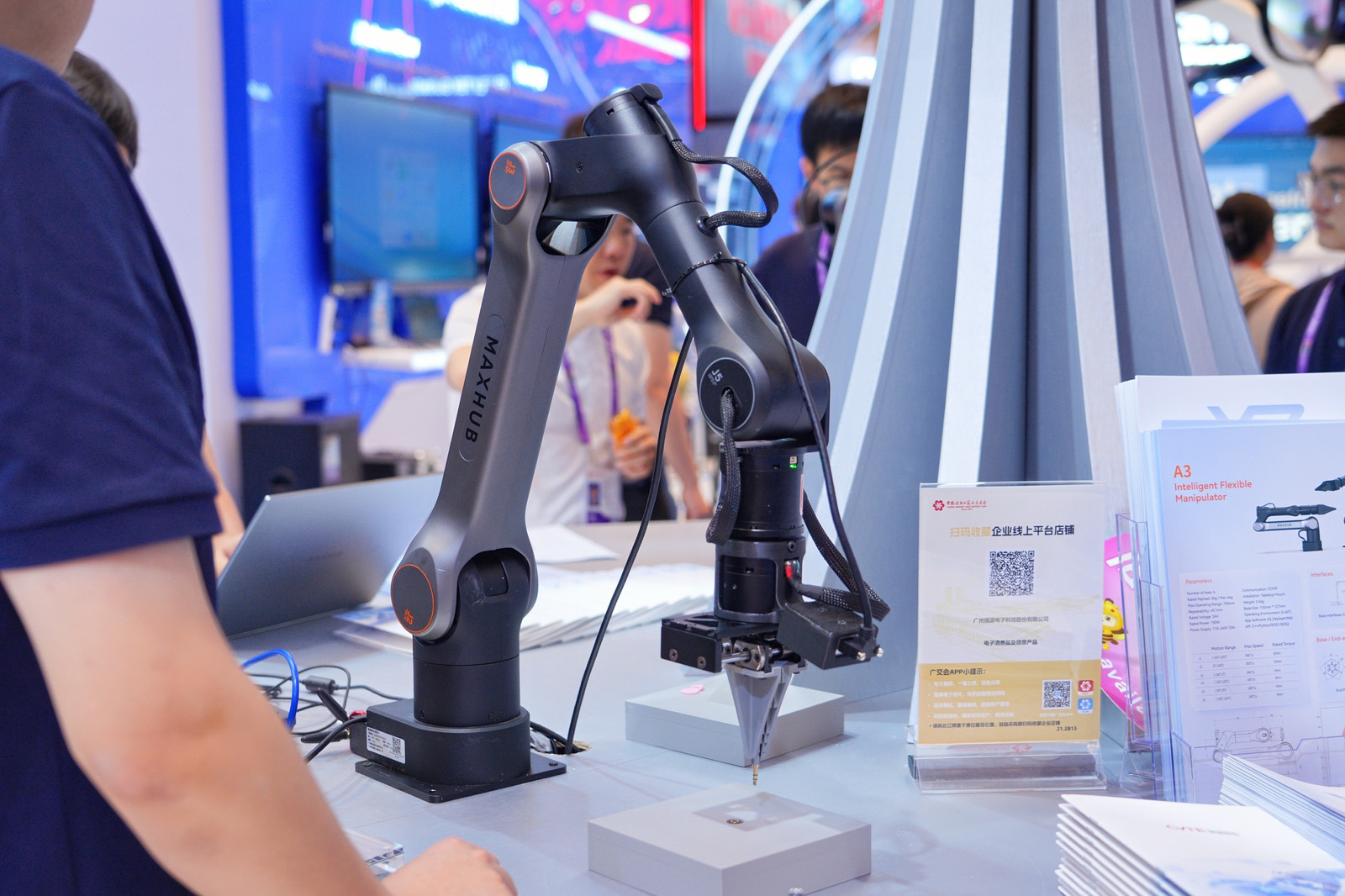 MAXHUB A3在上届广交会亮相就受到广泛关注,不到半年时间里,A3机械臂已斩获亮眼的销售增长。在应用层面,A3机械臂已在视源股份自有工厂中完成“无序分拣”“附件盒打包”等复杂作业,换线调试时间仅需2至3天,且无需编写代码,由普通工人即可完成数据采集,为中小企业提供了柔性自动化的新选择-。在职业教育与科研领域,基于MAXHUB A3 智能柔性机械臂平台,"AI+教学实验平台"集成了完整的AI教学与开发环境,预置多种主流AI框架与工具链,全面支持从数据标注、模型训练到推理部署的全流程实训,其开放性与易用性显著降低了机器人学习和研发门槛。
