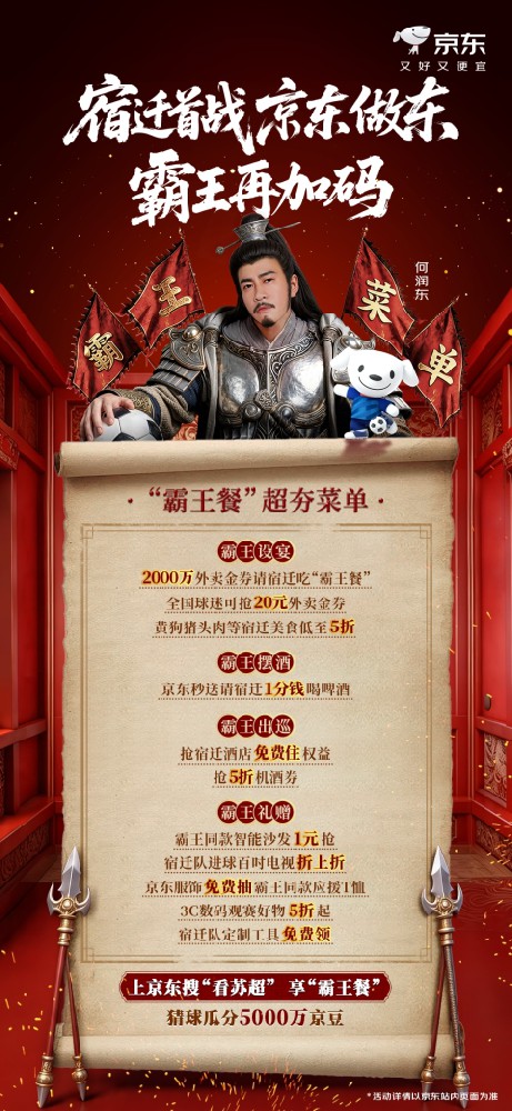 (原标题:“苏超”宿迁首战今日开赛,京东携手何润东再再再加码“霸王餐”福利)