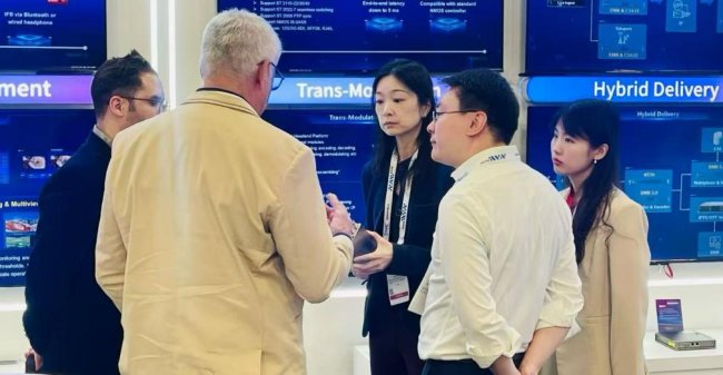Content Delivery展区,数码视讯主要展示了包含传统付费电视分发,高密度转码,传输质量保障等针对运营商分发相关解决方案。其中公司的多协议IP传输方案,重点围绕电视台分站点间传输、上星编码、分站点回传总站等场景,包含近场浅压缩传输和远场深压缩传输等多种方式。此外,本次NAB上公司还展示了针对酒店娱乐大屏、智慧会议室、中控调度大屏等场景的分布式显控大屏方案、针对运营商传输主备无感知切换场景及针对上星链路备份场景的安播切换方案以及,包含DOCSIS的CATV波分复用方案与边缘调制、FTTH等的接入网方案,展会现场吸引了大量业内人士的关注。
