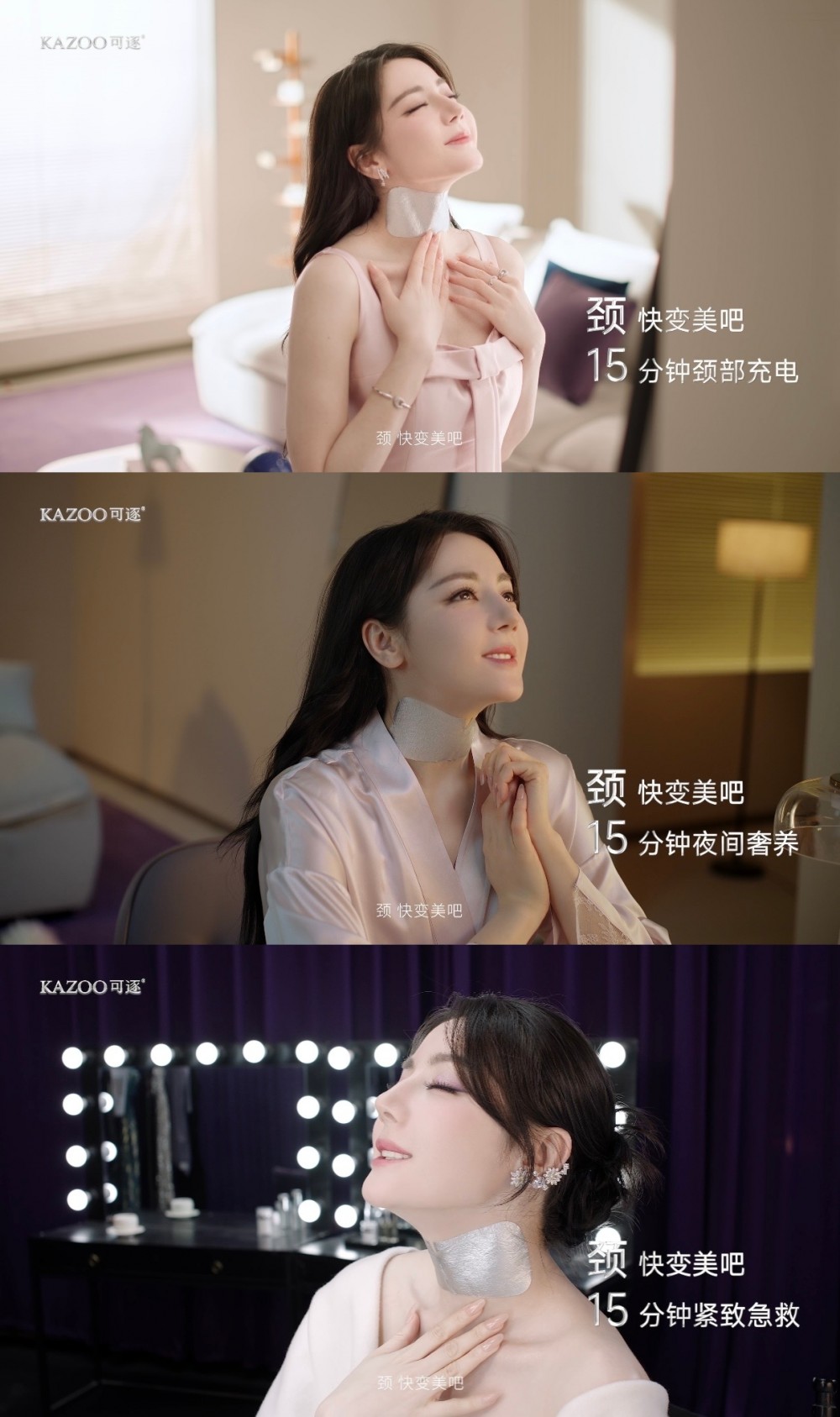 官宣TVC中,迪丽热巴化身产品体验官,分别在出门前、入睡前、红毯前三大场景,亲身示范只需15分钟,用KAZOO可逐银绷带颈膜完成一场高效“颈上膜法”,尽显精致护理的便捷与高效。