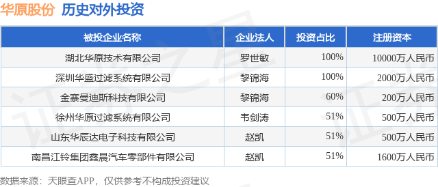 通过天眼查大数据分析,广西华原过滤系统股份有限公司共对外投资了6家企业,参与招投标项目76次;财产线索方面有商标信息14条,专利信息157条;此外企业还拥有行政许可37个。据2024年报数据,华原股份商誉23.32万元,同比未变化。