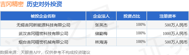 证券之星消息,根据天眼查APP显示,吉冈精密(920720.BJ)新增一起对外投资事件,被投资公司为无锡吉冈新能源科技有限公司,法定代表人张英杰,投资占比为100%。该公司从事研究和试验发展,注册资本为500万人民币。目前,吉冈精密共存在对外投资3项,详见下表: