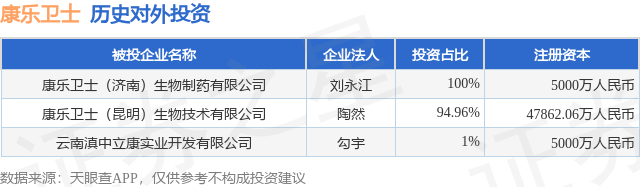 证券之星消息,根据天眼查APP显示,康乐卫士(920575.BJ)新增一起对外投资事件,被投资公司为康乐卫士(济南)生物制药有限公司,法定代表人刘永江,投资占比为100%。该公司从事医药制造业,注册资本为5000万人民币。目前,康乐卫士共存在对外投资3项,详见下表: