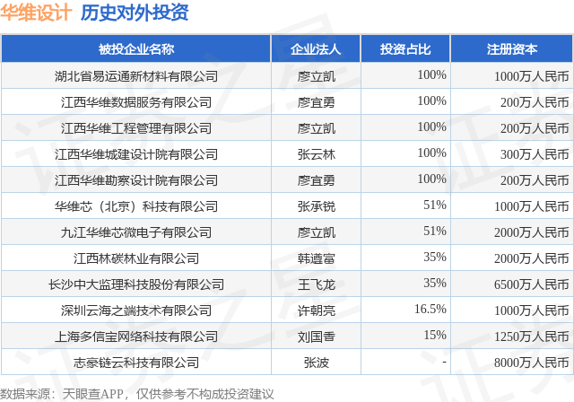 证券之星消息,根据天眼查APP显示,华维设计(920427.BJ)新增一起对外投资事件,被投资公司为湖北省易运通新材料有限公司,法定代表人廖立凯,投资占比为100%。该公司从事批发业,注册资本为1000万人民币。目前,华维设计共存在对外投资12项,详见下表: