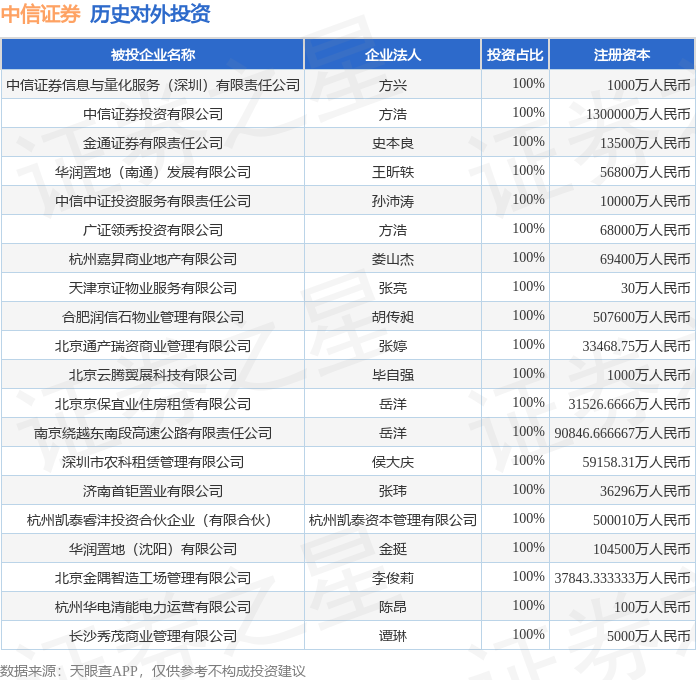 证券之星消息,根据天眼查APP显示,中信证券(600030.SH)新增一起对外投资事件,被投资公司为广东创世纪智能装备集团股份有限公司,法定代表人蔡万峰,投资占比为1.06%。该公司从事专用设备制造业,注册资本为166486.2589万人民币。目前,中信证券共存在对外投资288项,投资占比前20的项目见下表: