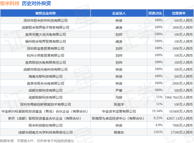 证券之星消息,根据天眼查APP显示,极米科技(688696.SH)新增一起对外投资事件,被投资公司为深圳市青睐创新智能技术有限公司,法定代表人张崇洋,投资占比为51%。该公司从事软件和信息技术服务业,注册资本为100万人民币。目前,极米科技共存在对外投资17项,详见下表: