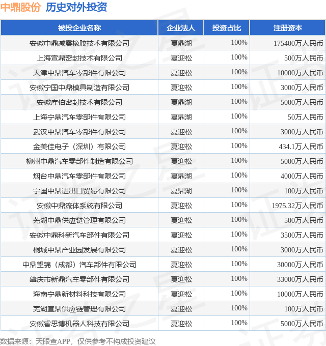 证券之星消息,根据天眼查APP显示,中鼎股份(000887.SZ)新增一起对外投资事件,被投资公司为合肥星汇传感技术有限公司,法定代表人顾慧昕,投资占比为35%。该公司从事专业技术服务业,注册资本为153.85万人民币。目前,中鼎股份共存在对外投资58项,投资占比前20的项目见下表: