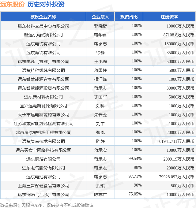 证券之星消息,根据天眼查APP显示,远东股份(600869.SH)新增一起对外投资事件,被投资公司为宜兴国绿远东新能源有限公司,法定代表人王鑫,投资占比为50%。该公司从事电力、热力生产和供应业,注册资本为500万人民币。目前,远东股份共存在对外投资38项,投资占比前20的项目见下表: