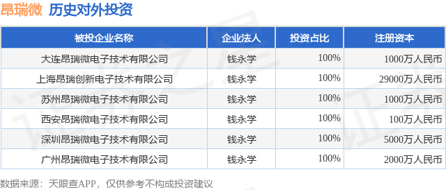 证券之星消息,根据天眼查APP显示,昂瑞微(688790.SH)新增一起对外投资事件,被投资公司为大连昂瑞微电子技术有限公司,法定代表人钱永学,投资占比为100%。该公司从事软件和信息技术服务业,注册资本为1000万人民币。目前,昂瑞微共存在对外投资6项,详见下表: