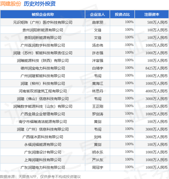通过天眼查大数据分析,润建股份有限公司共对外投资了116家企业,参与招投标项目16196次;财产线索方面有商标信息77条,专利信息197条,著作权信息263条;此外企业还拥有行政许可253个。据2024年报数据,润建股份商誉1.42亿元,同比减10.85%。长期股权投资9936.61万元,同比减3.25%。