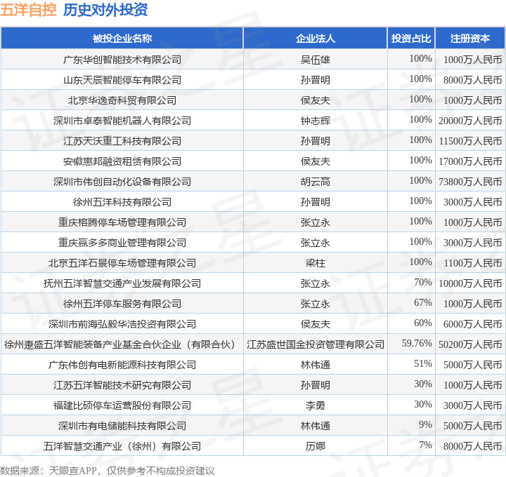 证券之星消息,根据天眼查APP显示,五洋自控(300420.SZ)新增一起对外投资事件,被投资公司为广东华创智能技术有限公司,法定代表人吴伍雄,投资占比为100%。该公司从事研究和试验发展,注册资本为1000万人民币。目前,五洋自控共存在对外投资21项,投资占比前20的项目见下表: