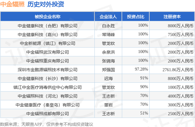 通过天眼查大数据分析,中金辐照股份有限公司共对外投资了11家企业,参与招投标项目9次;财产线索方面有商标信息8条,专利信息35条,著作权信息8条;此外企业还拥有行政许可16个。
