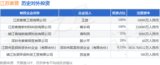 证券之星消息,根据天眼查APP显示,江苏索普(600746.SH)新增一起对外投资事件,被投资公司为镇江东辰环保科技工贸有限公司,法定代表人苏金泉,投资占比为-。该公司从事专用设备制造业,注册资本为500万人民币。目前,江苏索普共存在对外投资6项,详见下表: