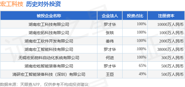 证券之星消息,根据天眼查APP显示,宏工科技(301662.SZ)新增一起对外投资事件,被投资公司为湖南宏屹智能装备有限公司,法定代表人罗才华,投资占比为65%。该公司从事专业技术服务业,注册资本为500万人民币。目前,宏工科技共存在对外投资7项,详见下表: