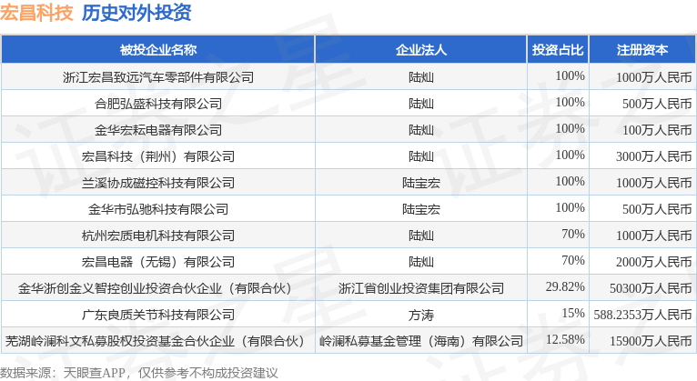 证券之星消息,根据天眼查APP显示,宏昌科技(301008.SZ)新增一起对外投资事件,被投资公司为芜湖岭澜科文私募股权投资基金合伙企业(有限合伙),法定代表人岭澜私募基金管理(海南)有限公司,投资占比为12.58%。该公司从事商务服务业,注册资本为15900万人民币。目前,宏昌科技共存在对外投资11项,详见下表: