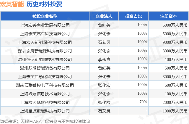 证券之星消息,根据天眼查APP显示,宏英智能(001266.SZ)新增一起对外投资事件,被投资公司为上海星源聚能科技有限公司,法定代表人石艾灵,投资占比为-。该公司从事电气机械和器材制造业,注册资本为1000万人民币。目前,宏英智能共存在对外投资11项,详见下表: