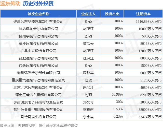 证券之星消息,根据天眼查APP显示,远东传动(002406.SZ)新增一起对外投资事件,被投资公司为马特马克重机有限公司,法定代表人李金宝,投资占比为0.23%。该公司从事通用设备制造业,注册资本为33474万人民币。目前,远东传动共存在对外投资14项,详见下表: