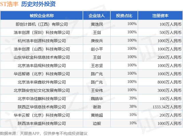 证券之星消息,根据天眼查APP显示,ST浩丰(300419.SZ)新增一起对外投资事件,被投资公司为即创计算机(江西)有限公司,法定代表人黄逸民,投资占比为100%。该公司从事专业技术服务业,注册资本为100万人民币。目前,ST浩丰共存在对外投资13项,详见下表: