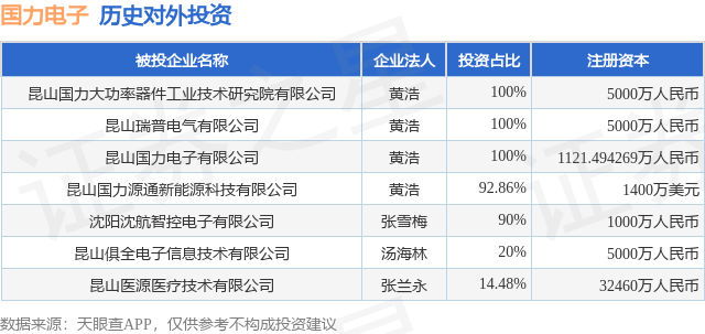证券之星消息,根据天眼查APP显示,国力电子(688103.SH)新增一起对外投资事件,被投资公司为沈阳沈航智控电子有限公司,法定代表人张雪梅,投资占比为90%。该公司从事计算机、通信和其他电子设备制造业,注册资本为1000万人民币。目前,国力电子共存在对外投资7项,详见下表: