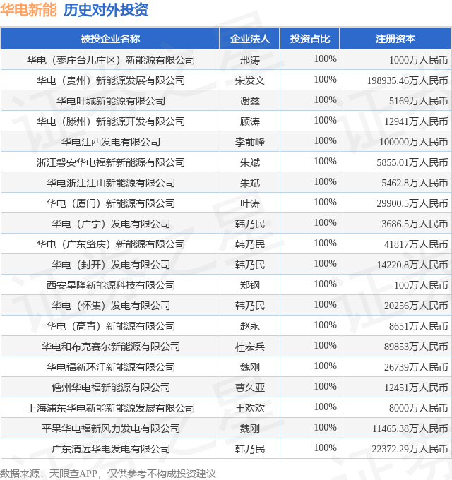证券之星消息,根据天眼查APP显示,华电新能(600930.SH)新增一起对外投资事件,被投资公司为华电(枣庄台儿庄区)新能源有限公司,法定代表人邢涛,投资占比为100%。该公司从事电力、热力生产和供应业,注册资本为1000万人民币。目前,华电新能共存在对外投资565项,投资占比前20的项目见下表: