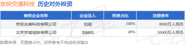 证券之星消息,根据天眼查APP显示,京投交通科技(01522.HK)新增一起对外投资事件,被投资公司为京投众甫科技有限公司,法定代表人刘瑜,投资占比为100%。该公司从事科技推广和应用服务业,注册资本为8000万人民币。目前,京投交通科技共存在对外投资2项,详见下表:
