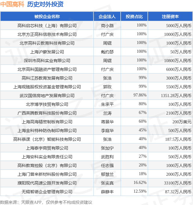 证券之星消息,根据天眼查APP显示,中国高科(600730.SH)新增一起对外投资事件,被投资公司为高科启芯科技(上海)有限公司,法定代表人商小路,投资占比为100%。该公司从事计算机、通信和其他电子设备制造业,注册资本为5000万人民币。目前,中国高科共存在对外投资25项,投资占比前20的项目见下表:
