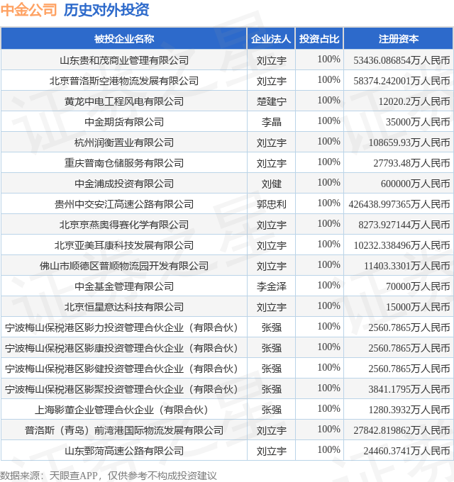 通过天眼查大数据分析,中国国际金融股份有限公司共对外投资了84家企业,参与招投标项目3185次;财产线索方面有商标信息754条,专利信息72条,著作权信息4315条;此外企业还拥有行政许可23个。据2025年报数据,中金公司商誉16.23亿元,同比未变化。长期股权投资9.83亿元,同比减2.36%。