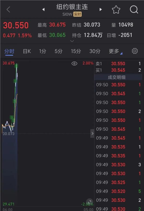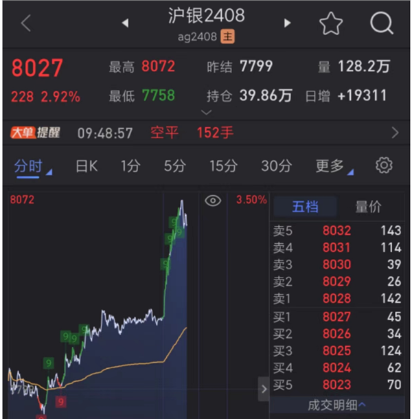 国内方面,主力合约沪银一度涨超3%,沪金也一度涨超2%。