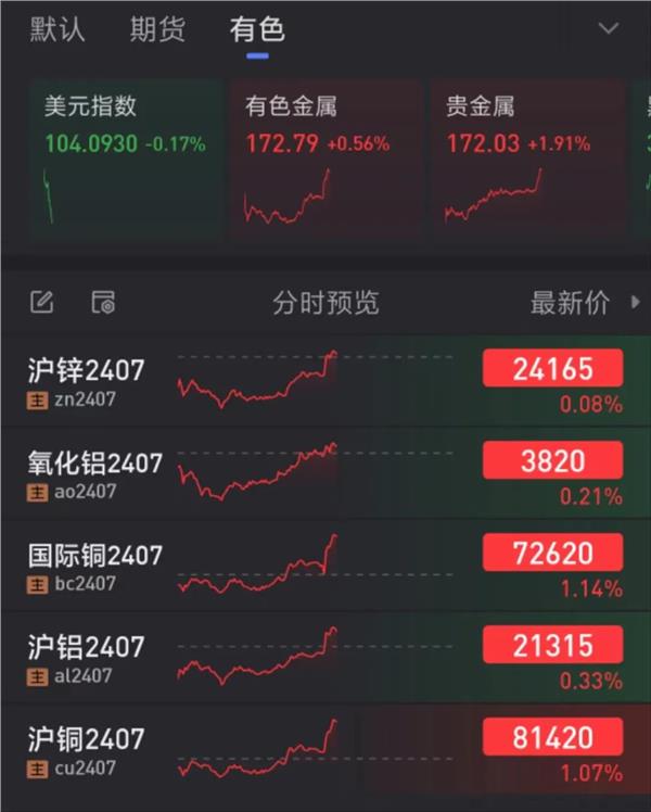 受此消息影响,有色金属早盘也短线集体拉升。截至发稿,国际铜、沪铜均涨超1%。