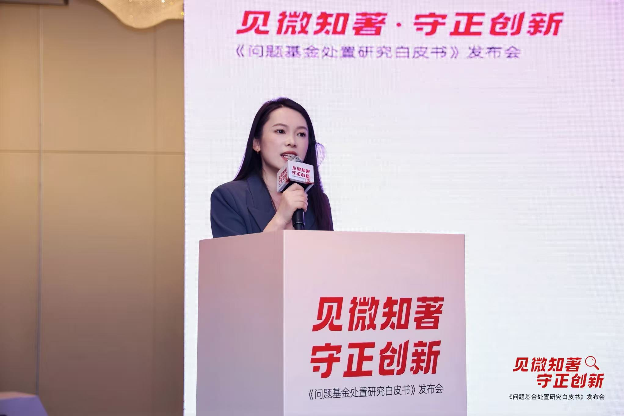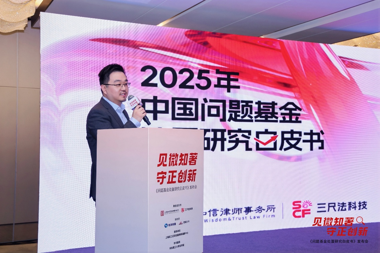 随后,上海知信律师事务所主任、白皮书主笔戴鹏飞对报告进行了深入解读。他梳理了问题基金的形成原因、识别标准、分类类型及处置难点,评估了现行机制的不足,并详细介绍了白皮书的核心亮点。