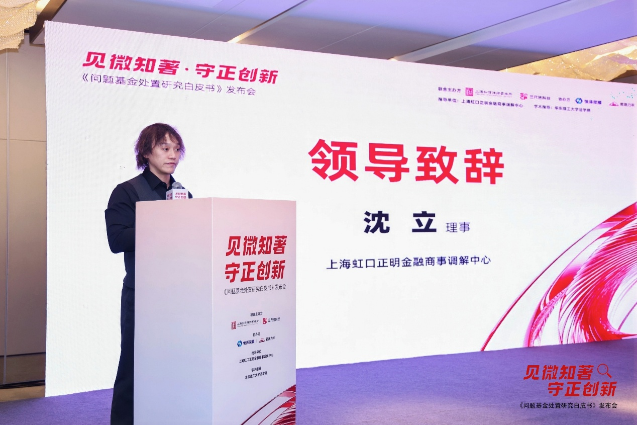 沈立理事则高度评价《白皮书》的发布,指出问题基金风险处置关系投资者利益与市场信任。他强调,“调解优先”应成为治理核心,通过调解与监管协调、多方协同,能够构建标准化处置流程、化解风险,并修复市场信心,推动行业健康发展。