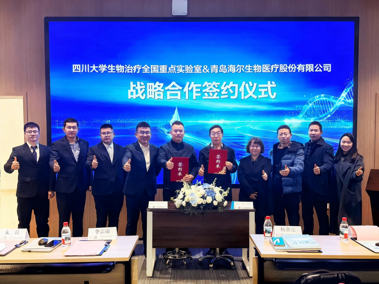 2025年12月27日,青岛海尔生物医疗股份有限公司(以下简称“海尔生物”)与四川大学生物治疗全国重点实验室(以下简称“川大全国重点实验室”)在成都转化医学大楼正式签署战略合作协议。双方旨在围绕生物医疗大健康产业发展需求,聚焦医工交叉技术创新、产品研发与场景应用,通过统筹核心资源,在技术合作、平台建设、市场拓展及资源整合等方面建立全方位、深层次的长期共赢机制。