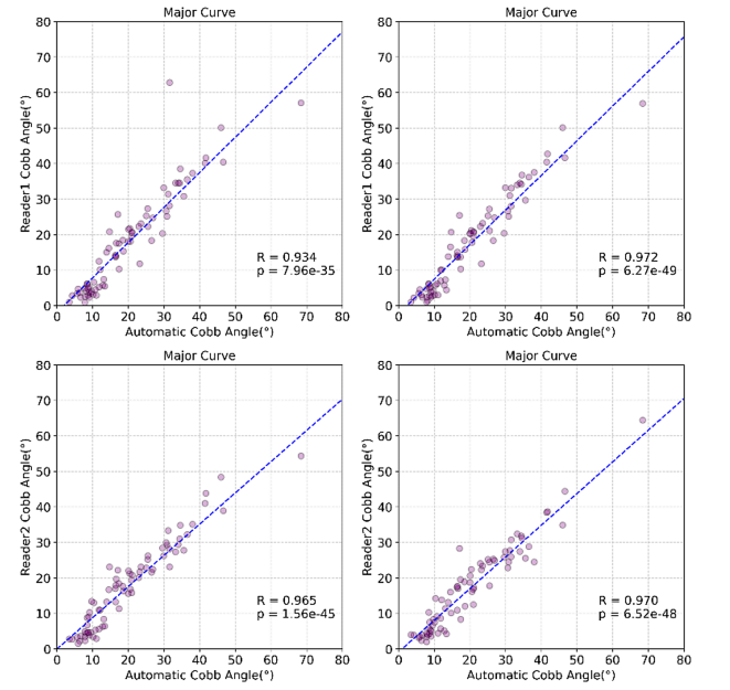 The Pearson correlation only on major Cobb angle of AP view images